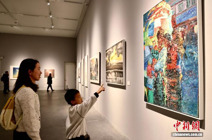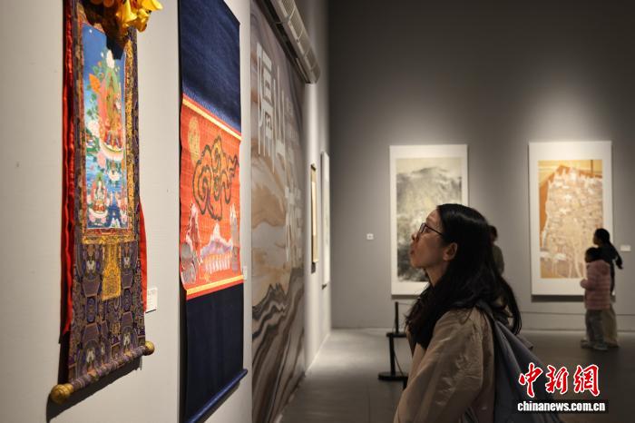图为观光者旁观油绘着述《朝——幸运推萨》。中新社记者 王磊 摄
