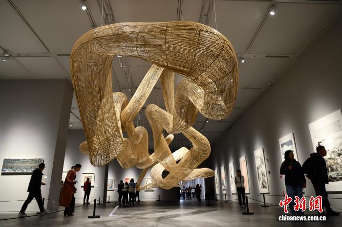 图为观光者旁观艺术拆置《江山织道·躲蜀战叫》。中新社记者 王磊 摄