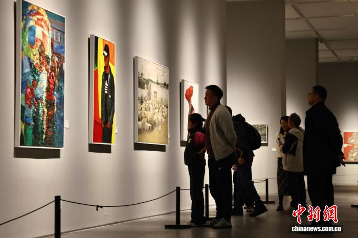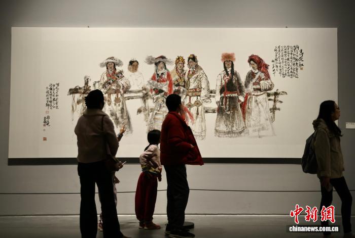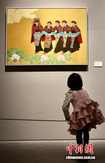 图为观光者旁观油绘着述《朝——幸运推萨》。中新社记者 王磊 摄